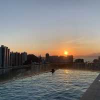 #Yage Hotel #staycation #Aberdeen Seaview #Seaview Swimming Pool #Hong Kong #High-Rise Seaview Room Hotel located at Wong Chuk Hang Station. The hotel is a 7-minute walk away. The third floor is the reception and restaurant. Breakfast is a buffet, $1200 includes breakfast, and the time is 7:30-10:00. There are not many seats and not many people on weekdays, so there is no time limit. Affordable hotel with basic food which was very reasonable and tasted good. The rooms are located above the 17th floor. The sea view rooms face Aberdeen and can see part of the remains of Jumbo Ocean Shop. The room is very new and clean. It's a pity that the ordinary sea view room doesn't have a bathtub. If you upgrade to a superior sea view room you will get a bathtub. The room wifi was very poor. The hotel’s signature check-in swimming pool features a sea view. It’s so nice to swim while watching the sunset. The swimming pool closes at 7:00pm. A not-too-expensive check-in hotel that is not hard to find and is close to the Ocean Park/Water Park. It's very convenient to stay here for one night after visiting.