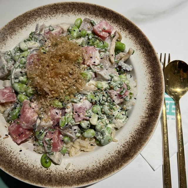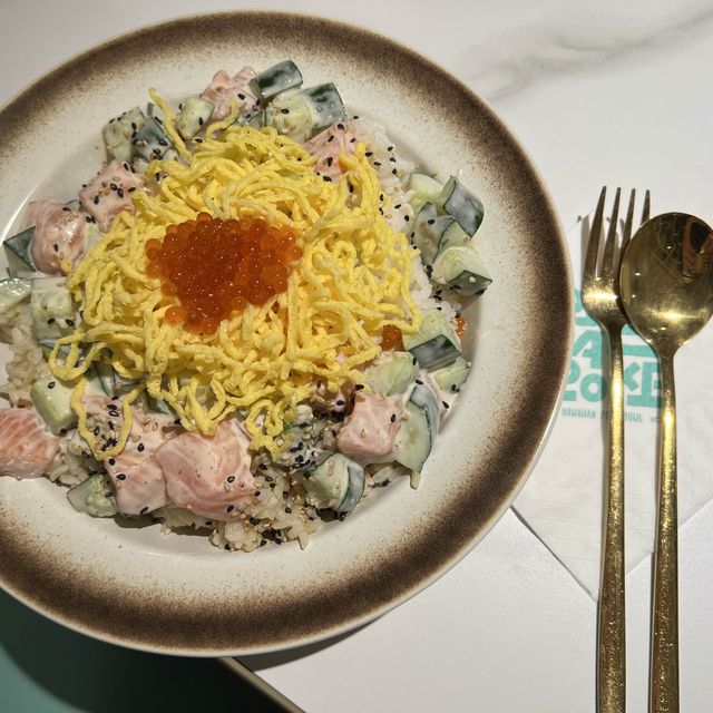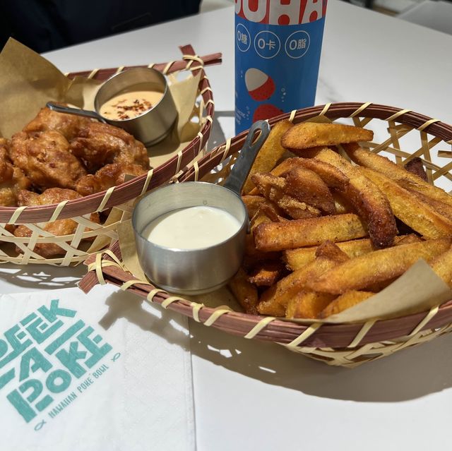 California Style $98 Mr. Yaxi $88 Coconut Water +$5 Lychee Yogurt +$2 Fried Chicken $48 Sweet Potato Fries $48 Taste: 😋😋😋😋😋 Value: 💲💲💲💲💲 Environment: 😌😌😌😌 Cleanliness: 🧹🧹🧹🧹🧹 Service: 💁🏼‍♀️💁🏼‍♀️💁🏼‍♀️💁🏼‍♀️ Recommendation: I've always wanted to try the low-fat, low-calorie Hawaiian Sashimi Rice Bowl, but I've been too busy trying other dishes to get the chance. One day, I had to rush to pick up my brother's shirt and go dress-trying with my future grandmother on the same day, so I had to opt for fast food. Since I hadn't had plain rice in a while, I suddenly felt like eating something. So, I decided to try the Hawaiian Sashimi Donburi restaurant in Daqing, Chongqing. You can choose your own toppings for the rice bowl or get a pre-made one. Since I have a bit of a problem choosing between different options, I opted for the pre-made rice. The California Style dish had sashimi salmon, cucumber, egg, salmon roe, and nut sesame sauce. The salmon roe was generous and a great value. All the ingredients were fresh and protein-rich. Mr. Yaxi had sashimi tuna, edamame, shiitake mushrooms, green onions, and wasabi cheese sauce. I loved the wasabi sauce; it was so pungent and exciting. You could choose sushi rice, pearl brown rice, or a combination. It was a huge portion, probably two or three bowls. My daughter probably couldn't finish the whole plate, and I only ate half. I kind of regret not choosing the salad base. The fried food was excellent. Fried to order, the batter was perfectly thin and crispy. The Thousand Island dressing served with the fried chicken was even more flavorful with the addition of chopped chili peppers. The sweet potato fries were already a bit sweet, but the honey added a touch of sweetness. I loved the restaurant's Hawaiian-style decor; it adds a vibrant vibe. The avocado figurines are so adorable, kids will love them. They also offer a board game, perfect for fun with friends and family. --------- Peek-A-Poke (Tsim Sha Tsui) 📬Shop S01B, Heath, Basement, Chungking Mansions, 36-44 Nathan Road, Tsim Sha Tsui #HawaiianSashimi #SweetPotatoFries #FriedChicken #Poke #HawaiianDish #peekapoke #FoodReview #HongKongGoodPlaces
