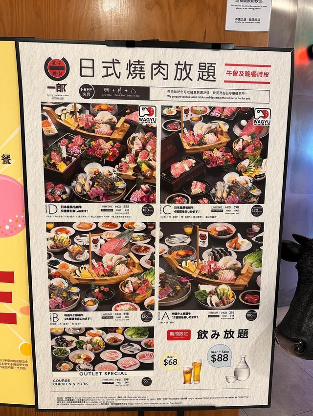 100/120 minutes of all-you-can-eat BBQ, high-quality wagyu beef is a must-try