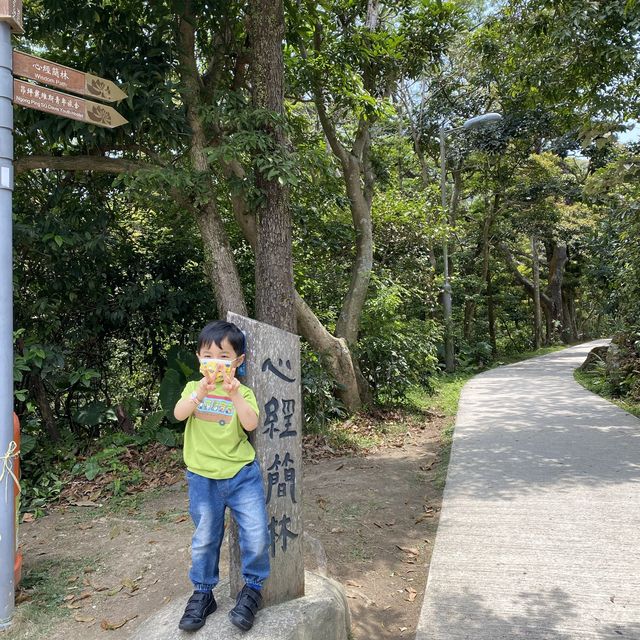 The best thing about the crystal carriage is that you can see the scenery 360 degrees. The scenery along the way is really picturesque. The blue sky and white clouds and the green trees make you feel relaxed and happy🏞 When we arrived at Ngong Ping, we went hiking behind the Buddha. #Heart Sutra Simplified Forest The front section can push #bb cart, but to the location of the wooden pillar can not push the car ~ After hiking the Heart Sutra Simplified Forest, there are also tree study trails and a road up Phoenix Mountain nearby. With my brother, we must walk the simple tree study trail😌 350 meters long, quickly done✅ After a little hike, sweating, we went back to Ngong Ping Market to eat something, there are many stalls eating tofu pudding snack shop, $ 20 bowl of tofu pudding ~ #360cablecar #cablecar #parent-child activity #holiday destination #hiking #parent-child hiking #easy route #on Ping half day tour #bbcar route #hiking#familytravel