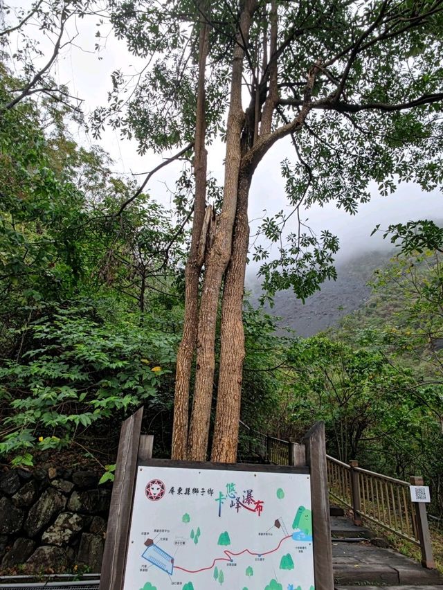 Hidden deep within the mountains of Shizi Township, Pingtung County, lies a breathtaking secret spot—Kayoufeng Waterfall. The name "Kayoufeng" originates from the Paiwan language, meaning "be careful, walk slowly," a fitting reminder as the path to the waterfall is not an easy one. However, this very inaccessibility has preserved the pristine beauty of Kayoufeng Waterfall, awaiting travelers willing to put in the effort to explore it. To reach Kayoufeng Waterfall, visitors must walk approximately 15 to 20 minutes from the trailhead. The trail, which winds along the mountains and streams, offers stunning scenery, allowing hikers to admire dense forests and crystal-clear streams up close. Along the way, you can hear the chirping of insects and birds, feel the gentle breeze, and immerse yourself in the tranquility and comfort of nature. As you venture deeper, the sound of flowing water grows louder, and upon rounding the final bend, the magnificent sight of the waterfall suddenly comes into view. Standing at about 40 meters tall, Kayoufeng Waterfall cascades from a great height, creating a spectacular white curtain of water. The mist from the waterfall fills the air, providing a refreshing sensation. At the base of the waterfall lies a crystal-clear pool, surrounded by smooth, rounded boulders that have been polished by years of water flow. This serene pool contrasts beautifully with the powerful energy of the waterfall, creating a harmonious scene of motion and stillness. Kayoufeng Waterfall is not just a picturesque spot for photos but also a therapeutic journey into the natural beauty of Pingtung's mountains and forests.