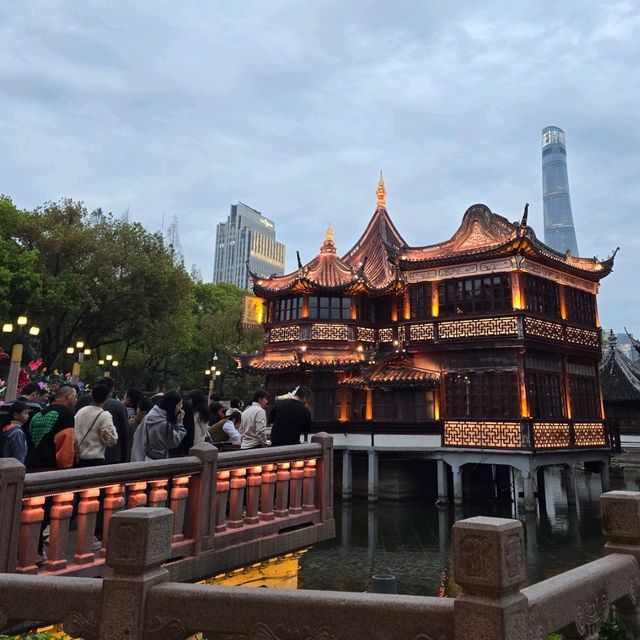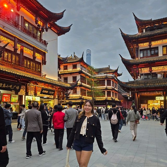 Yuyuan Garden, an ancient Chinese garden and traditional market in downtown Shanghai, is beautifully lit up at night. There are many souvenir shops and restaurants, including a Michelin-starred Xiaolongbao restaurant, which was incredibly crowded, so we didn't get to try it. The day we visited, it was packed with people. It's worth a visit, and the photos are stunning. I recommend going in the evening, as the sun is less intense and the weather is perfect. Getting there: Metro Yuyuan Garden Station #dreamtrip #shanghai #travelshanghai