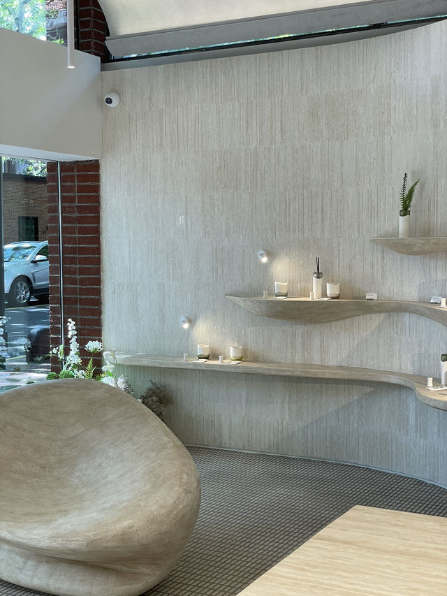 Located right in front of the Wukang Mansion, the Shanghai Chill More brand shop welcomes you with a subtle fragrance that instantly lifts your mood as you step inside. The interior, predominantly in white tones, feels clean and spacious, while the addition of plants and wooden decor elements creates a warm and harmonious balance. ✨ The store feels more like a small gallery than a mere product display area. Shelves neatly arranged with candles and diffusers are thoughtfully styled, and the soft lighting enhances the calm ambiance. 🕯️ Particularly, the minimalist table by the window, bathed in sunlight, offers the perfect spot to pause and relax with the delightful scents. The entire space provides an experience of 'staying,' making it more than just a shopping destination. It’s a place where you can enjoy spending time in a sensory and aesthetic atmosphere. Whether visiting alone or with someone, the shop exudes a comfortable charm that makes you want to linger longer. 🌿🤍