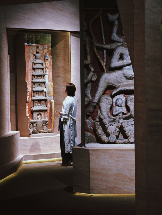 The Yungang Grottoes from the textbooks have come to Shanghai~ The pinnacle of Buddhist art left by the Northern Wei Dynasty 🙏🏻 🦱 Must-see exhibition 👉🏻 Buddha head of Cave 20: the most iconic image of Yungang, solemn and magnificent 👉🏻 Western standing Buddha, reborn after a thousand years through digital technology 👉🏻 Northern Wei Buddha head fragments and scripture rubbings, all authentic 🚩 Outdoor + indoor dual exhibition areas Outdoor Music Cave → QuKan Art Museum indoor → Light and Shadow Hall → Cultural and Creative Area ① Outdoor exhibition area (Jinchao Lane 8) 1:1 3D printed Cave 12 "Music Cave." Although it is a replica, the restored details are very good. The celestial musicians have varied expressions, truly "China’s earliest court symphony orchestra." This close-up experience is amazing since even visiting Shanxi doesn’t allow such proximity. ② Indoor exhibition area (QuKan Art Museum) is divided into four units: "Transformation," "Craftsmanship," "Light and Breath," and "Yearning." Besides the 3D glasses experience, the 30-minute light and shadow show is a must-see, with laser engraving recreating the grotto carving scenes, done very well. 💡 Name: Sea of Clouds Gazing — Yungang Grottoes Art Special Exhibition ⏰ Exhibition period: until March 26, 2026 🚗 Location: Jinchao Lane 8, Hongkou District + QuKan Art Museum 🕰️ Time: Daily 10:00 AM - 9:30 PM