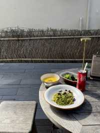 I stumbled upon a small pasta restaurant while walking along Shanghai's Anfu Road. The atmosphere was charming, but I was pleasantly surprised by how delicious it was. This is a "completely customizable pasta restaurant," where you can choose everything from the sauce, toppings, noodles, and even the doneness. I started with warm pumpkin soup, followed by basil pesto pasta topped with olives and broccoli, and then the fungi porcini mushroom ravioli topped with sun-dried mushrooms. Every dish had a distinctly natural flavor, and the basil pesto, in particular, had a rich yet clean aroma. After dinner, I took a leisurely stroll down Anfu Road, famous for its charming streets. The autumn sunlight bathed the streets, creating a perfect day. 🍂 If you're looking to enjoy your own pasta in a cozy setting, I highly recommend Anfu Road's "JE & JO"! #TravelOverseas