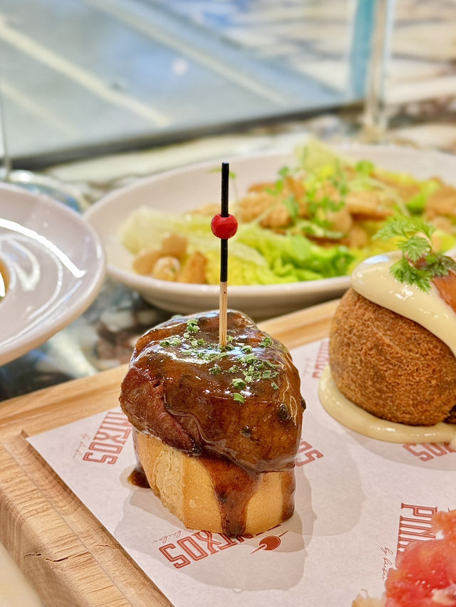 This Spanish restaurant in Wanchai, PINTXOS by bàrbar, has been open for a few months and is a sister shop to the popular restaurant bàrbar. The restaurant is comfortable and decorated in warm-toned wood, which is full of relaxed and casual atmosphere. Recently, the restaurant has launched a new lunch set, which is suitable for working people nearby. The dishes are rich, selected high-quality ingredients, and quality is online. 。 🍽️Set Lunch Available Monday through Friday (12 noon to 3 p.m.) Classic $168 / Premium $238 。 🔺Start ▪️Gazpacho or Daily salad The Spanish frozen soup is refreshing and tastes sweet and sour and appetizing; the vegetables in the time salad are fresh and crisp and feel fresh. 。 🔺Pintxos Pintxos is exquisite and compact, one bite at a time, with just the right amount to taste multiple flavors at once. 。 ▪️Steak tartare The steak tartar is delicate, blends just right with the delicious sauce, and has no fishy taste. 。 ▪️番茄面包、伊比利亚火腿“paleta”。 Crispy outside and soft inside, served with 🍅 tomato, Iberian pork shoulder ham, taste salty and sweet, very layered. 。 ▪️Traditional rusa potato salad with shrimp The fluffy Russian potato salad, with the bouncy 🦐 shrimp meat, brings freshness and makes people fall in love with it. 。 ▪️Chicken rillette, crispy quinoa Chicken🐔 with crispy quinoa, rich in texture. 。 ▪️Squid croquette with all-i-oli The squid croquettes are crispy on the outside and soft on the inside, and full of squid aroma. I really want to have another one. 。 ▪️马铃薯和牛肋骨“bomba”。 The potato beef rib bomb is crispy on the outside and soft on the inside, full of meat flavour, and complements the fluffy mashed potatoes. 。 ▪️Beef tenderloin with perigord The beef tenderloin🥩 is soft and tender, and the meat is rich and fragrant. It is served with homemade sauce, which brings a unique flavor. 。 🔺Drink ▪️Virgin Sparkling Sangria The restaurant has a variety of alcoholic and non-alcoholic beverage options. This non-alcoholic sparkling sangria🍹 retains the traditional flavor, full of fruity aroma, and is refreshing, colorful and rich in summer feeling. 。 📍PINTXOS by bàrbar (Wan Chai) G/F, 22 Boat Street, Wan Chai 。 。 #HongKongFood #HongKongFoodMap #HongKongFood #hkfoodie #foodiehk #hkrestaurant #hkfoodblogger #hkfoodpic #photooftheday #yummy #hkfoodlover #yummyfood #hongkongrestaurant #hongkongrestaurant #hongkongtravel #HongKongdaytrip #Hongkongrestaurant #Hongkongtravel #photorestaurant #spanish #lunchset #PINTXOS #PINTXOSbybàrbar #barbar