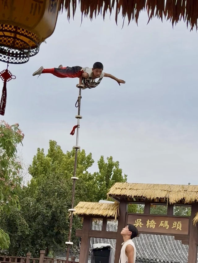 #September2025 Wuqiao has been hailed as the home of acrobatics since ancient times. The moment I stepped into the world of acrobatics, I was greeted by drumbeats and cheers. On the stage, aerialists traced graceful arcs, and the audience held their breath as the fire wheels spun. At that moment, I felt my blood boiling, as if I were transported back to the heyday of the Silk Road trade. The park also houses an acrobatics museum and a traditional market, showcasing centuries of tradition. I chatted with a veteran artist, watching him twirl puppets and recite ancient operas—his dedication to his craft shone through the ages, a radiance that even time cannot extinguish. Wuqiao acrobatics is more than just a performance; it's a legend of national wisdom.
