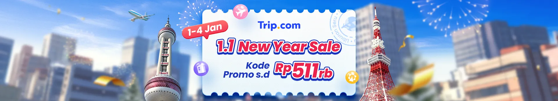 Awali tahun baru dengan rencana liburan terbaik lewat 1.1 New Year Sale dari Trip.com. Khusus untuk kamu yang ingin mengamankan perjalanan lebih awal, nikmati promo liburan awal tahun dengan kode promo hingga Rp511rb, ditambah flash sale harian untuk atraksi wisata favorit.