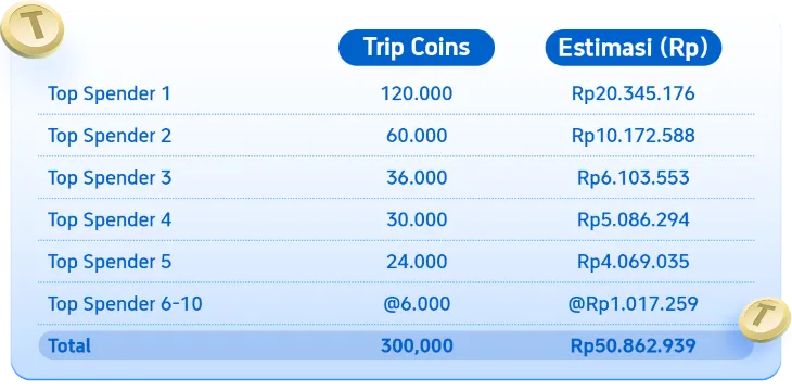 Ikuti Trip Bagi Berkah dan jadi Top Spender! Pesan tiket pesawat & hotel untuk memenangkan Trip Coins hingga 300.000!