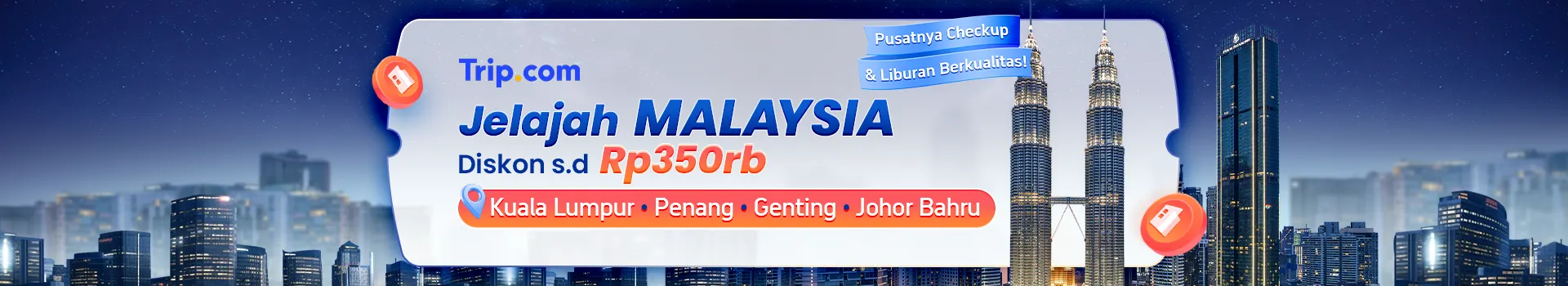 Rencanakan liburan dan medical check-up ke Malaysia dengan harga pasti hemat! Dapatkan diskon hingga Rp350rb untuk penerbangan dan hotel ke Kuala Lumpur, Penang, Genting, dan Johor Bahru hanya di Trip.com.