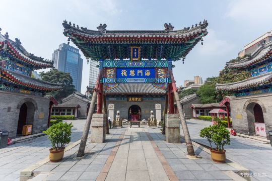 Jalan menuju kuil ini disebut "Jalan Kebudayaan Kuno" dan merupakan replika jalan perbelanjaan Dinasti Qing yang dipenuhi toko-toko yang menjual kerajinan tangan khas.