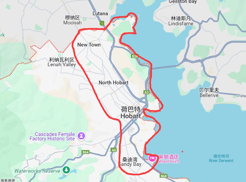 ●Garis merah mengacu pada wilayah kota Hobart. Ketersediaan layanan penjemputan dan alamat penjemputan akan dikonfirmasi oleh tempat wisata(pada tanggal tertentu, perjalanan pulang pergi dapat diantar ke hotel-hotel di kota Launceston, silakan hubungi layanan pelanggan)