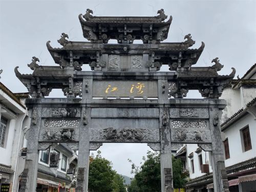 JiangwanDesa ini merupakan representasi dari suasana keilmuan Wuyuan. Desa ini memiliki "Balai Sansheng, Balai Dunchong, Balai Peixin", dan "Rumah Tua Keluarga Teng" yang terawat baik, serta beberapa bangunan lainnya. Bangunan-bangunan kuno bergaya Hui, serta situs-situs bersejarah seperti Gerbang Donghe dan Sumur Shuiba, memiliki nilai sejarah dan ornamen yang tinggi. Desa ini juga merupakan rumah leluhur dari generasi orang-orang hebat.