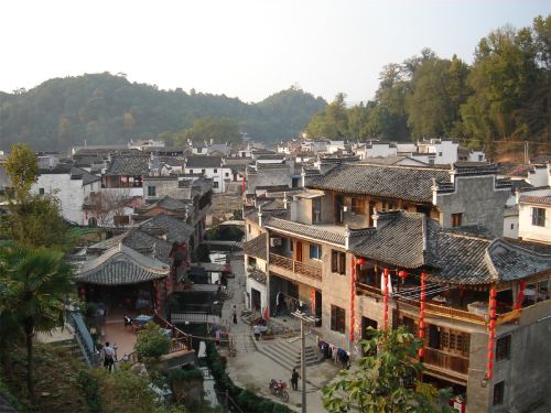 Desa ini dikelilingi pegunungan dan air, serta diberkahi dengan penduduk yang luar biasa dan pemandangan yang indah. Rumah-rumah dan hunian kuno Dinasti Ming dan Qing di desa ini dibangun di sepanjang sungai dan bersandar di gunung, dengan dinding putih dan ubin hitam yang tersebar di sekitarnya; jalan-jalan dan gang-gang dihubungkan oleh sungai, dengan sembilan tikungan dan sepuluh belokan, dan terdapat sepuluh jembatan sungai yang menghubungkan kedua tebing tersebut; jalan-jalan batu biru kuno saling bersilangan, dan dihiasi dengan dua aliran sungai yang jernih, lempengan willow yang beterbangan, dan dua jembatan yang saling tumpang tindih, membentuk gambaran indah jembatan-jembatan kecil, air yang mengalir, dan rumah-rumah; kunjungi pelabuhan komersial kuno Huizhou.