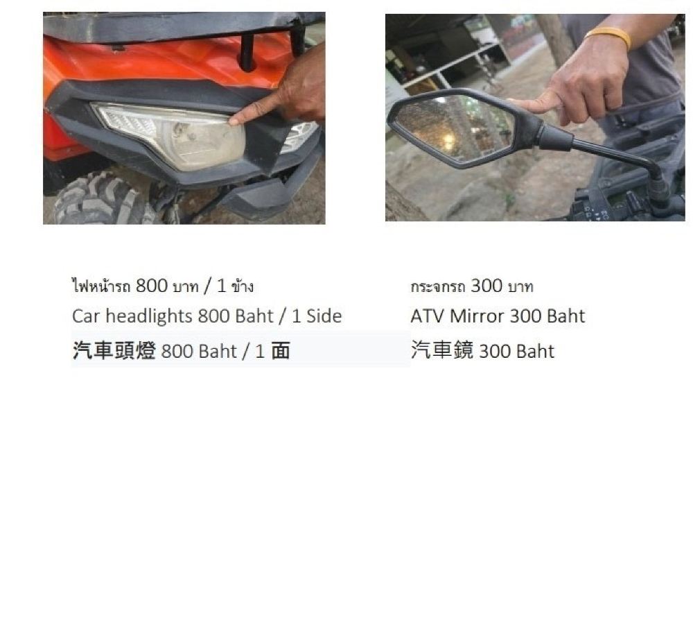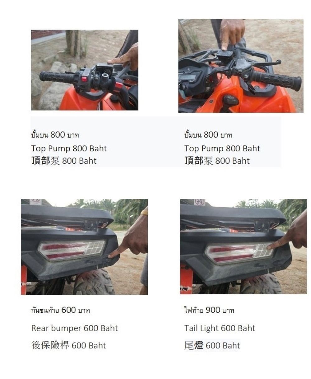 - Jika kendaraan mengalami kerusakan, akan dikenakan biaya tambahan sebesar 300-900 Baht Thailand, yang dibayarkan di tempat.