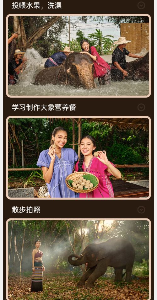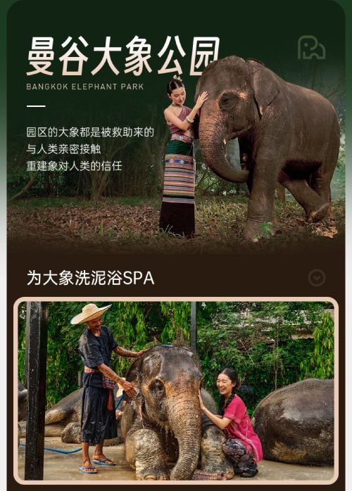 Perjalanan yang menarik, gajah-gajah di taman ini semuanya diselamatkan dan memiliki kontak dekat dengan manusia, membangun kembali kepercayaan gajah terhadap manusia.