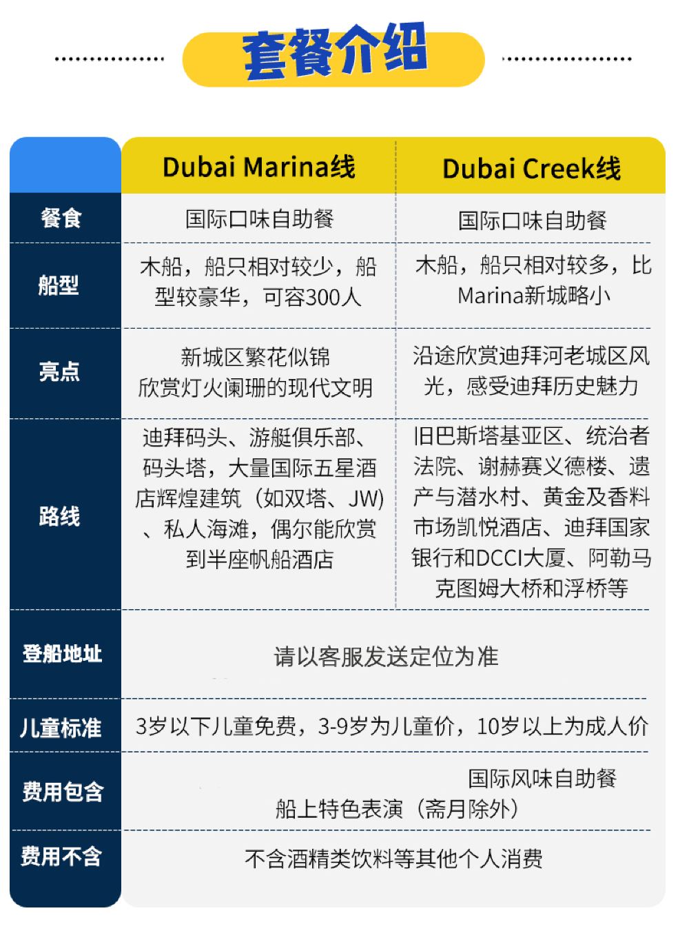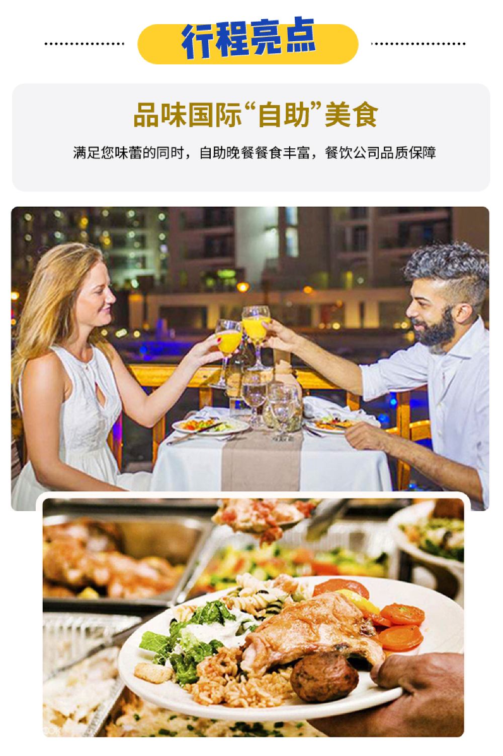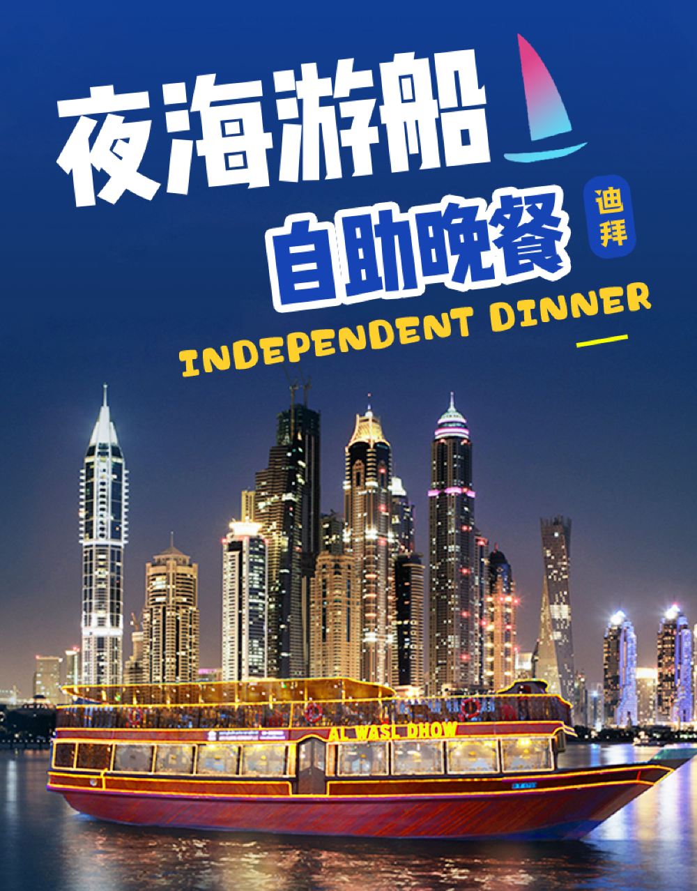 Nikmati masakan internasional dan pemandangan malam Dubai yang menakjubkan dari kapal pesiar.