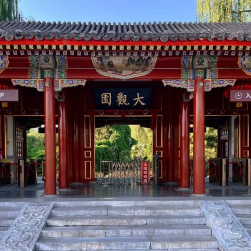 ▲ Taman Besar Beijing (Beijing Grand View Garden), terletak di No. 12 Jalan Nancaiyuan, Distrik Xicheng, Beijing, adalah taman bergaya klasik yang mereplika pemandangan "Taman Besar" dari novel sastra klasik Tiongkok "Impian di Istana Merah". Taman ini terutama berfungsi sebagai lokasi syuting film dan televisi, sekaligus merupakan kawasan wisata komprehensif dengan fungsi wisata, hiburan budaya, dan liburan santai. Luas areanya mencapai 110.600 meter persegi, dengan luas bangunan 25.400 meter persegi dan luas perairan 16.000 meter persegi.