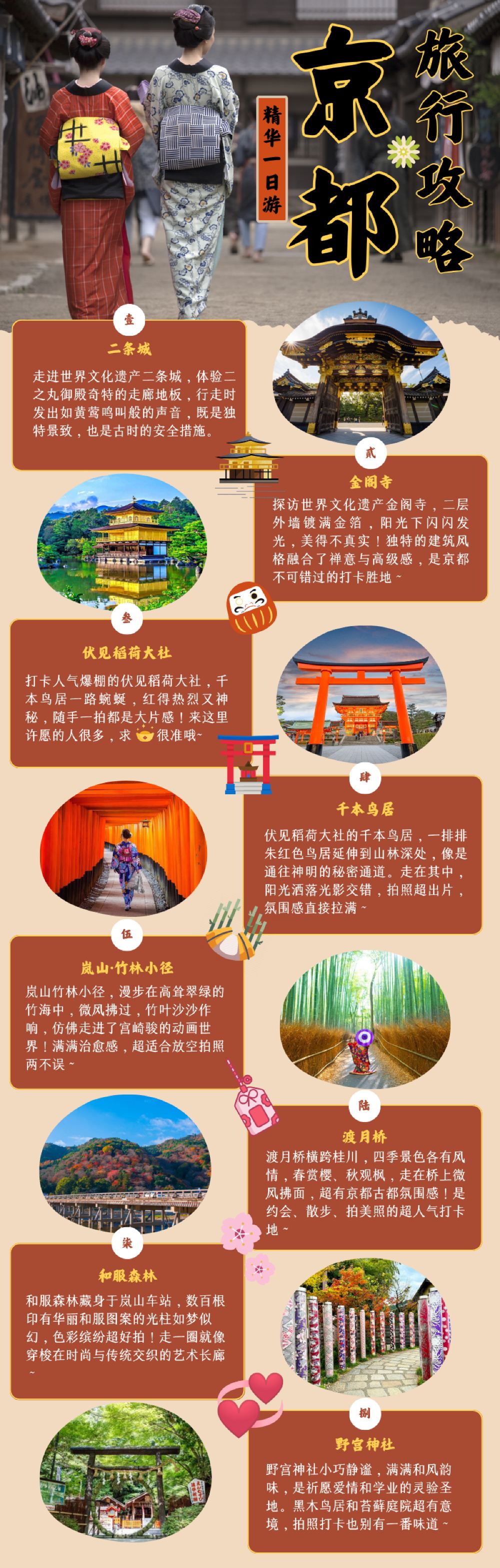 BerandaKyotoTur Satu Hariperjalanan satu hari di Kyoto : Kastil Nijo, Kuil Kinkaku-ji, Kuil Fushimi Inari, Jembatan Arashiyama Togetsukyo, dan Hutan Kimono