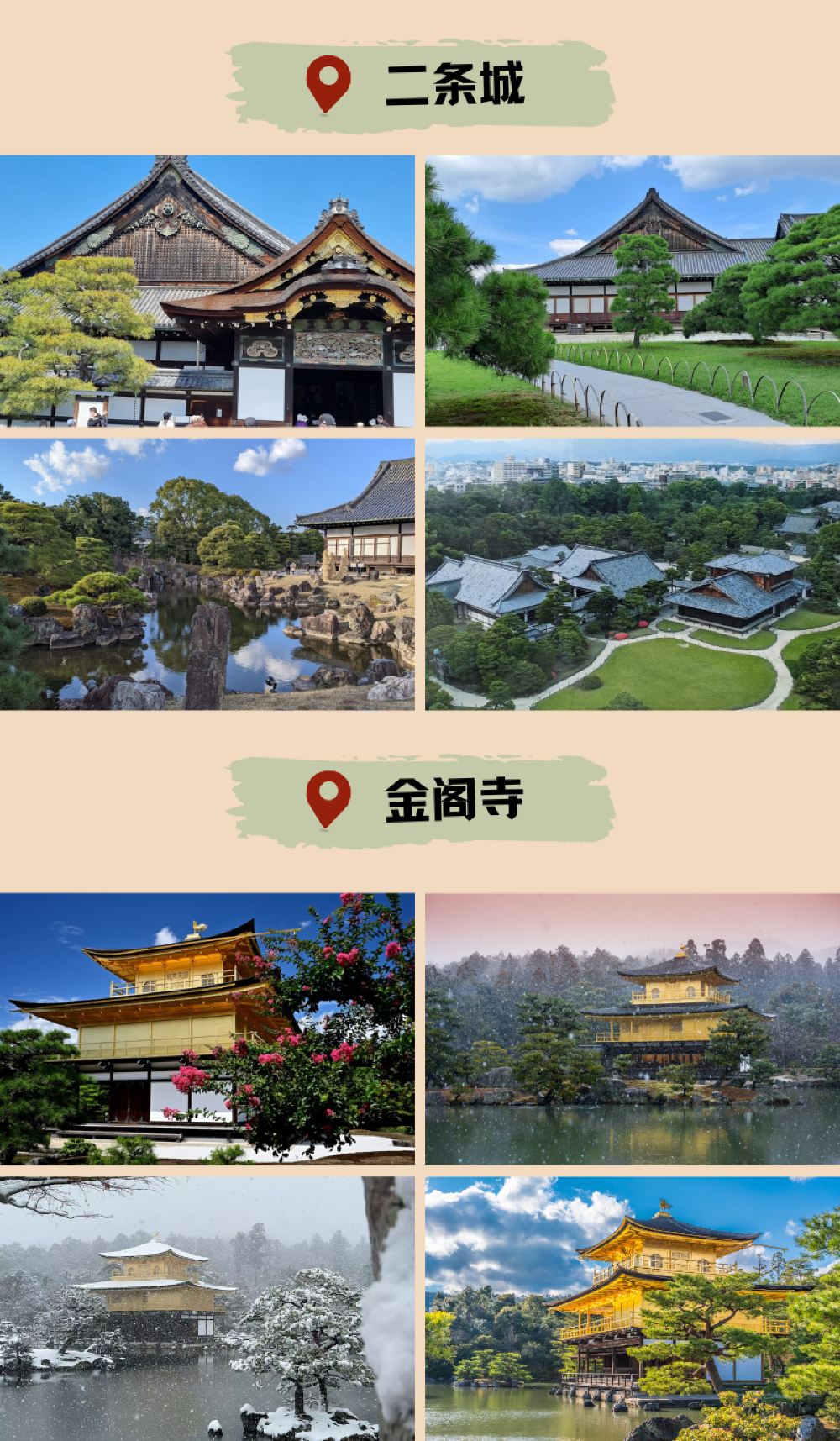 [Kuil Kinkaku-ji] Paviliun Emas telah bersinar selama 600 tahun, danau seperti cermin memantulkan langit Muromachi, dan bunga sakura, salju, dan pohon maple semuanya indah.