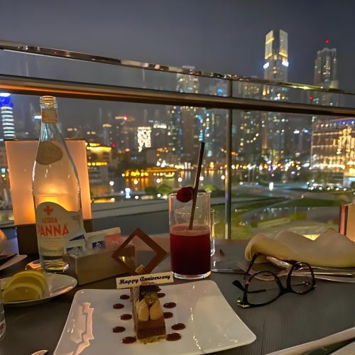 ▲ Hidangan-hidangan lezat tersaji di atas meja, dengan lautan bintang yang memukau di kejauhan, gedung-gedung pencakar langit yang menjulang tinggi. Sambil menikmati hidangan lezat, cakrawala Dubai akan segera terlihat, denyut nadi kota berdenyut di malam hari.