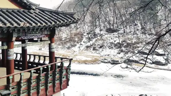 Paviliun Batu Soliter - Paviliun bergaya Korea yang dibangun di tepi air, menawarkan pemandangan indah di semua musim, yang mencerminkan lanskap sekitarnya.