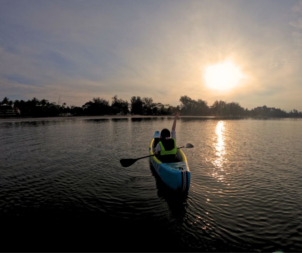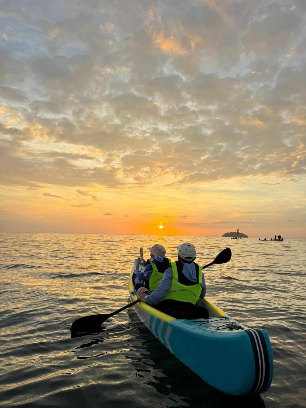 ▲ Meluncur di jam emas — berkayak melintasi perairan tenang Tanjung Aru.