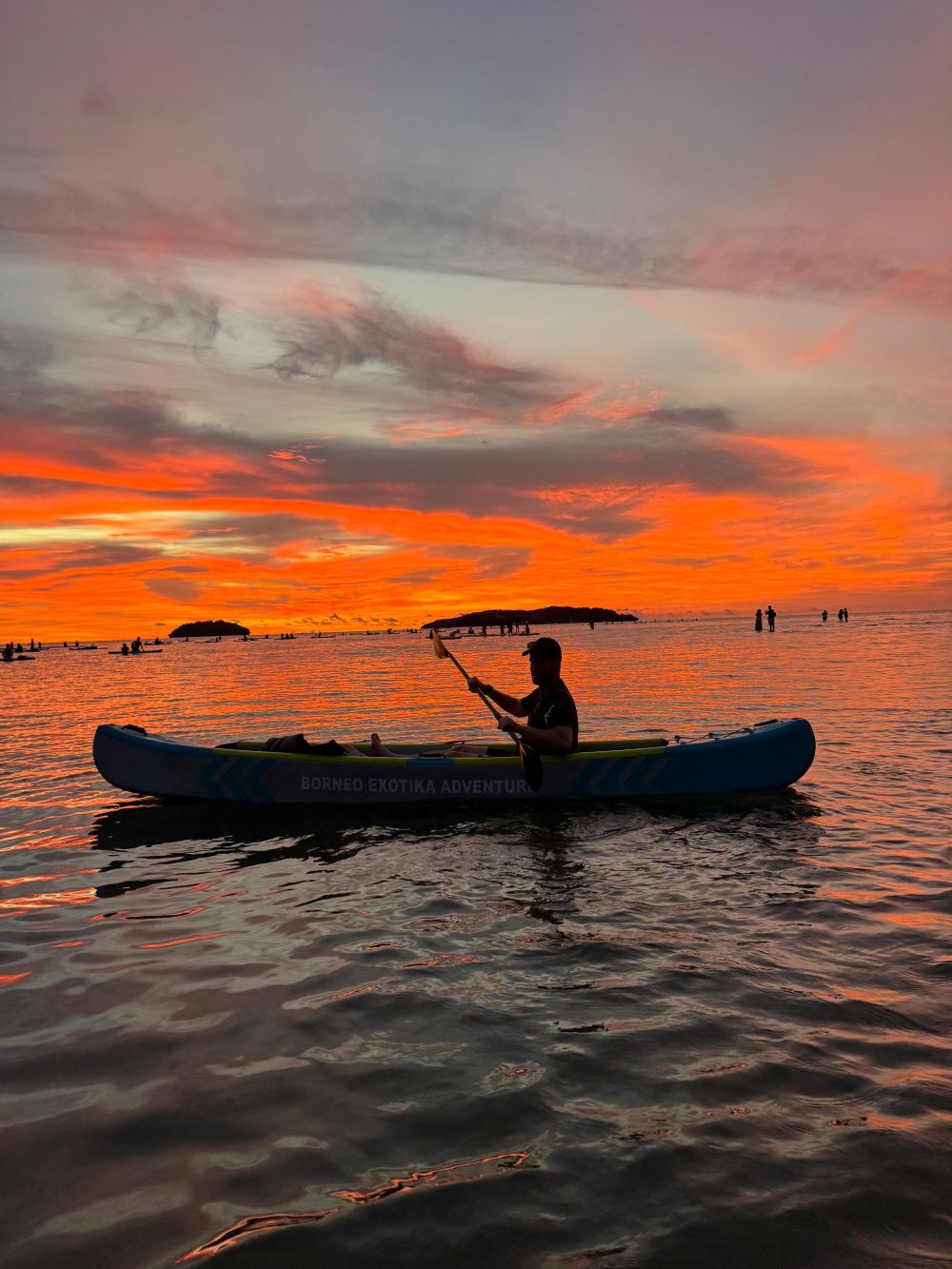 ▲ Mendayung di bawah langit yang diterangi api — matahari terbenam yang magis di Tanjung Aru.