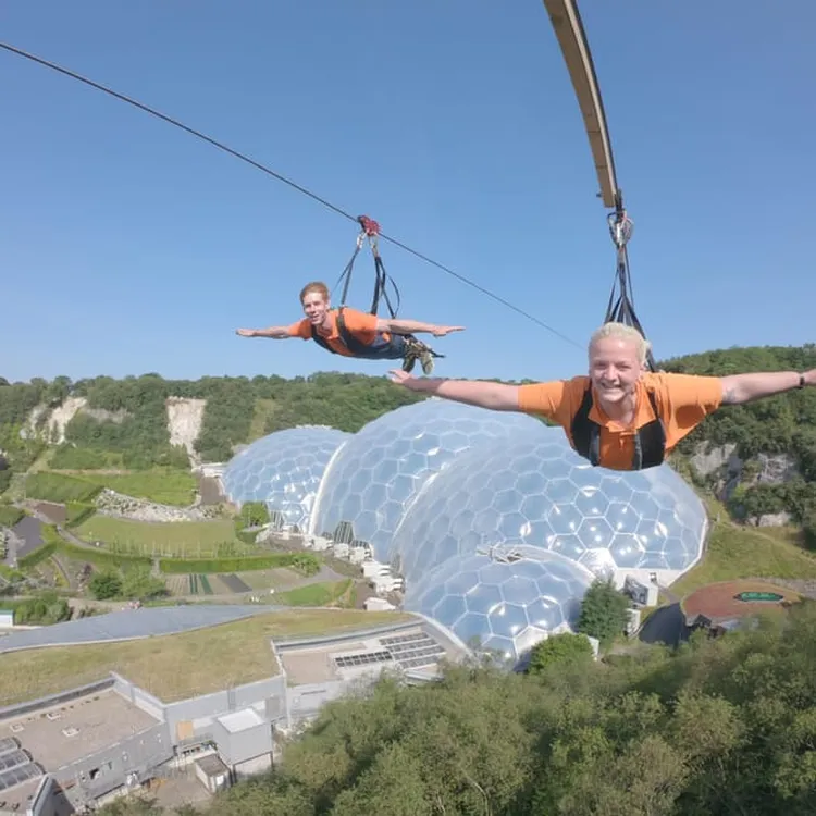 Rasakan adrenalin yang terpacu saat Anda terbang di atas Eden Project dengan kecepatan 60 mph