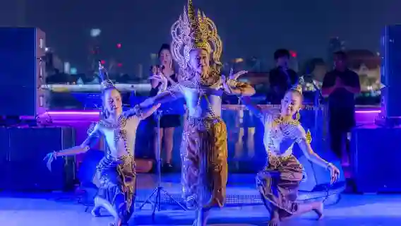 Nikmati pertunjukan musik langsung, pertunjukan tari tradisional Thailand.