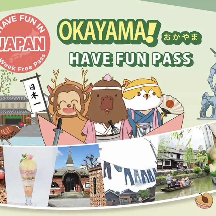 Tiket Kota Okayama|Tiket Masuk Gratis 1 Minggu Bersenang-senang di Okayama (7 Hari, 3 Barang)