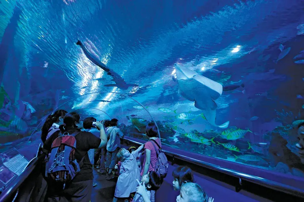 • Berjalan-jalan santai melalui terowongan bawah air sepanjang 90 m dan kagumi hampir 150 spesies berbeda makhluk laut dan darat langka, dengan total hingga 5.000 ekor.